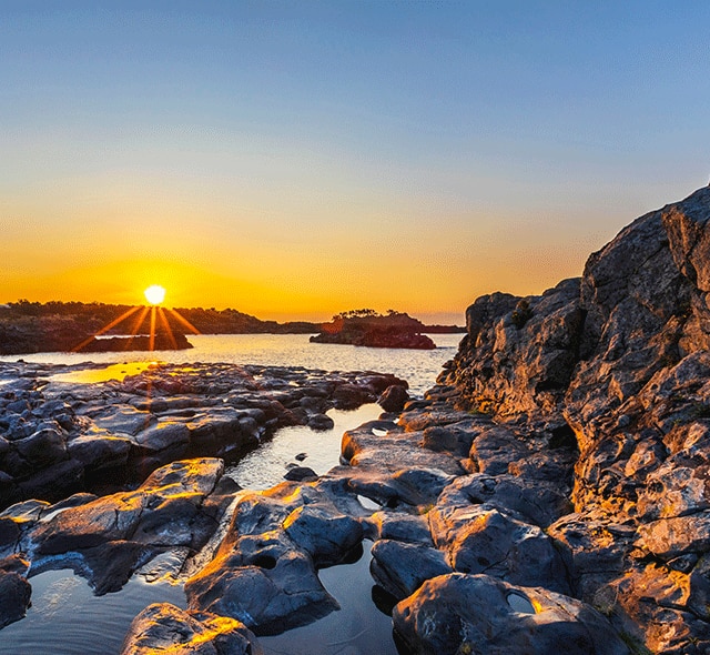 Embrace the tranquil charm of Gangjeong Village on Jeju Island’s volcanic southern coast. This peaceful port town offers scenic walks along dramatic lava rock cliffs and a taste of Korea’s freshest seafood, right from the morning catch. Enjoy the island’s warm hospitality as you explore local temples and markets. Explore further on a hike over Hallasan’s lush slopes or wander to Jeongbang Waterfall to witness its cascades falling directly into the sea.